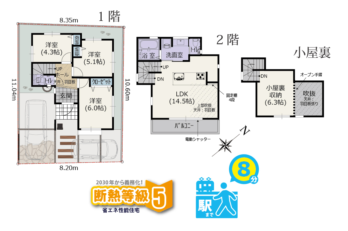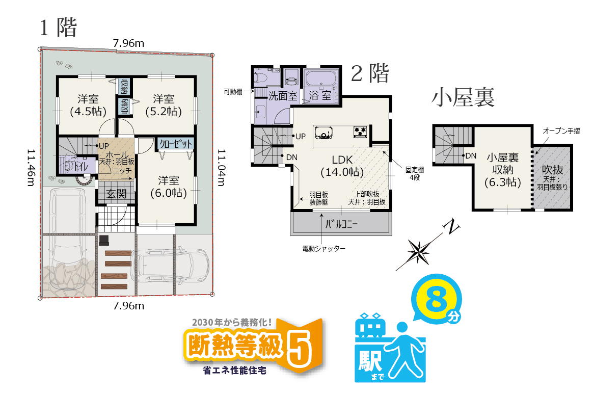 土地面積/89.48㎡ 建物面積/85.80㎡(小屋裏収納13.46㎡を含む)